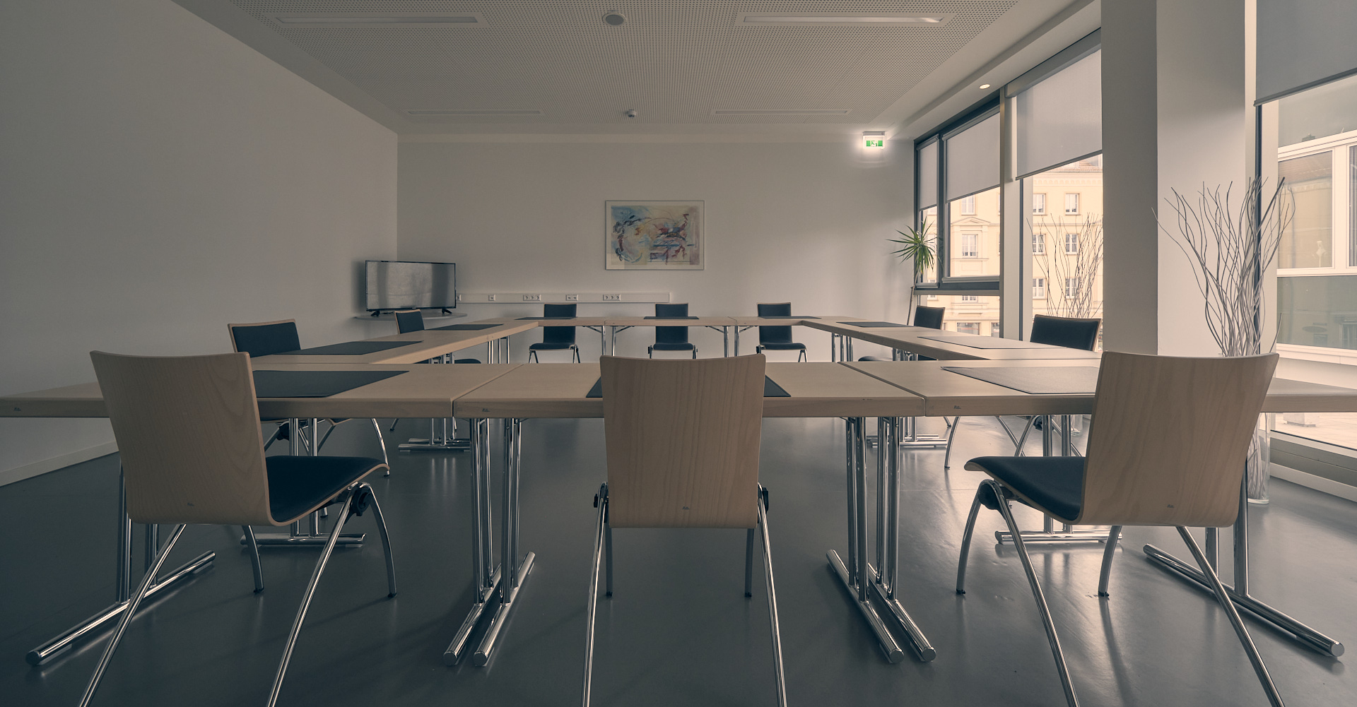 und 46 m² sind in der Stadtmitte der ideale Veranstaltungsort für Konferenzen, Tagungen, Seminare, Lesungen, Weiterbildungsveranstaltungen, Personalversammlungen, Arbeitsgruppensitzungen, Prüfungsveranstaltungen.